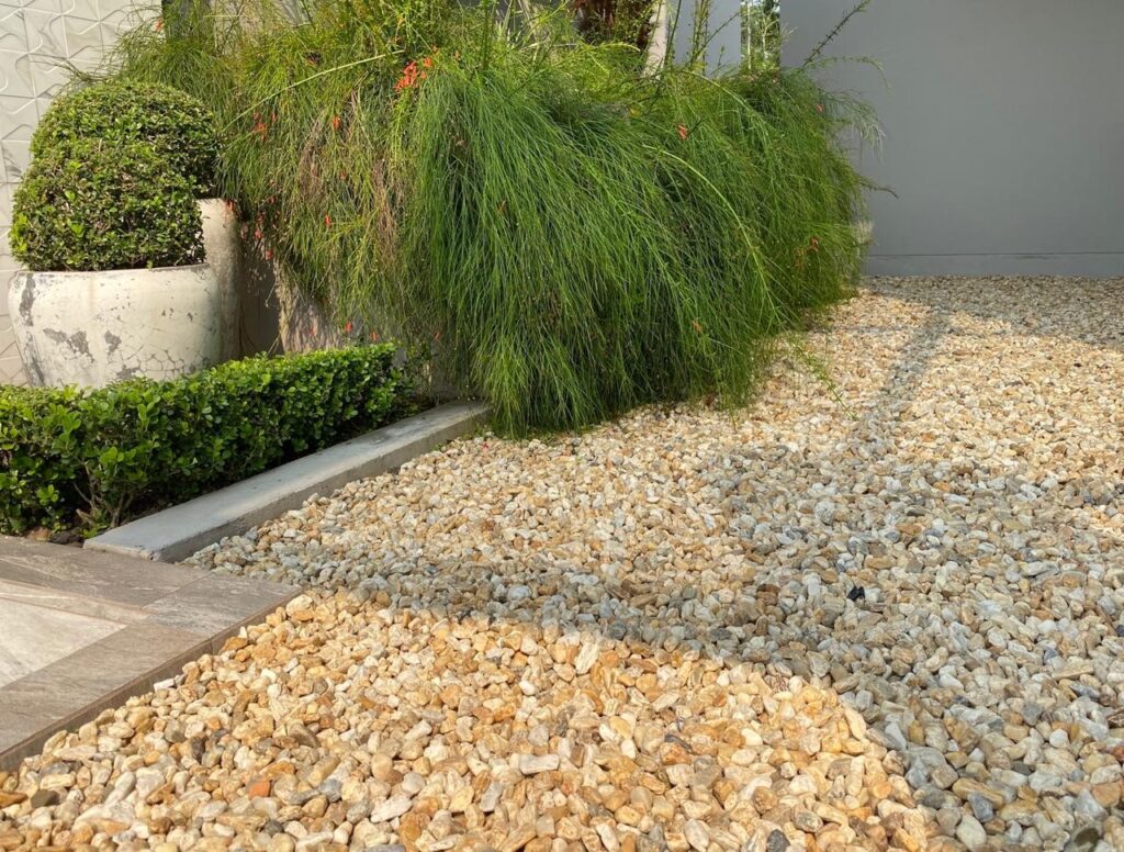 Essas opções não se decompõem, sendo mais utilizadas quando o foco é baixa manutenção e efeito estético, especialmente em projetos de paisagismo contemporâneo.